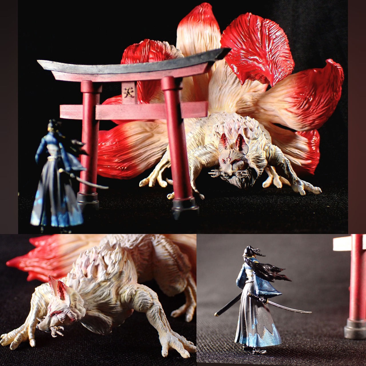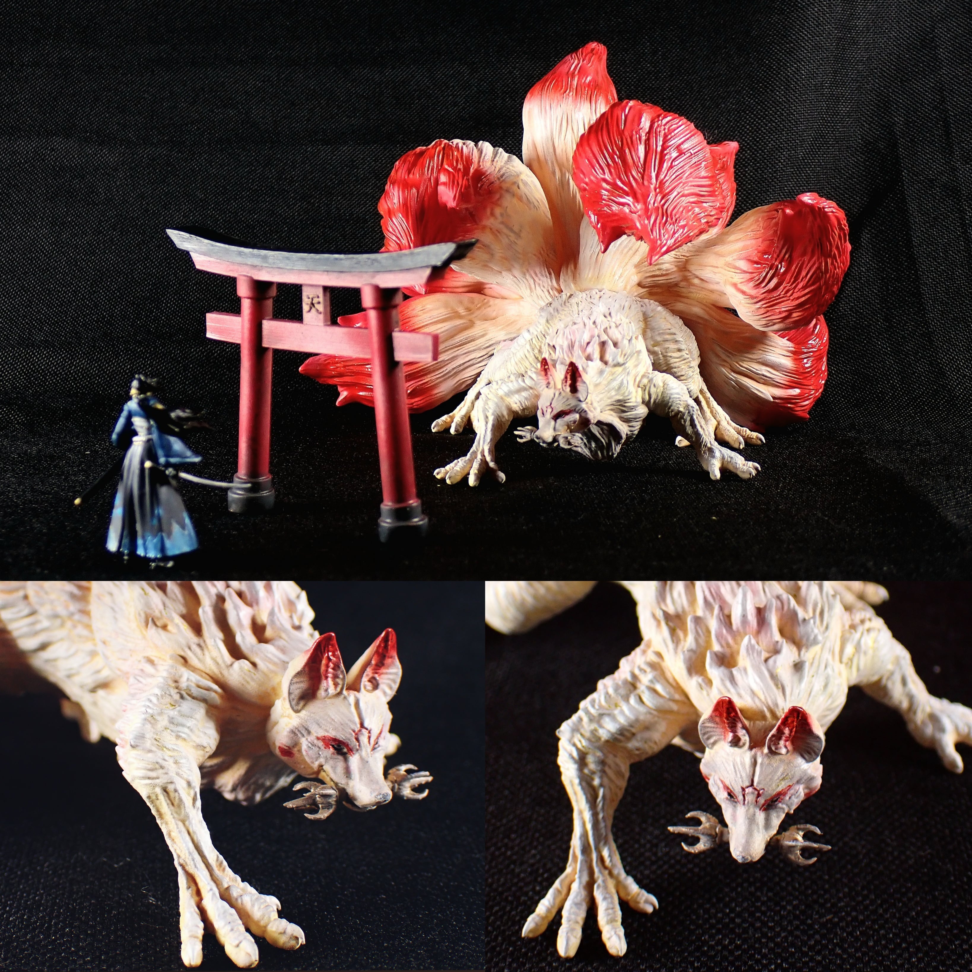 九尾の狐が神格化した伝説の「天狐」と、彼女に侍が対峙する瞬間を切り取っ造形作品です。